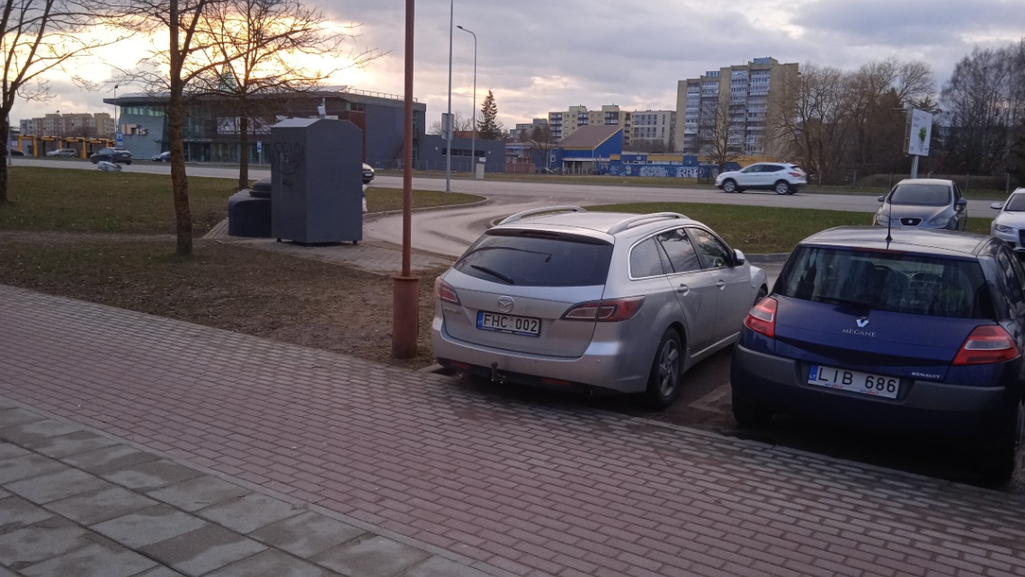 Galimas ir kitas variantas – eiti prie konteinerių aikštelės per žaliąją veją. Tačiau ir čia kyla problemų – gyventojams, nešantiems atliekas, prie konteinerių masiškai einant per žaliąją veją, veja išsitrypia ten pasidaro purvynas, ypač drėgnuoju metų laiku.