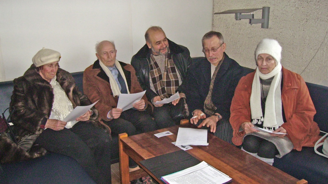 Grupelė Šiaulių miesto savivaldybės gyventojų, atvykę į savivaldybę pasikalbėti su miesto vadovais dėl stringančios renovacijos