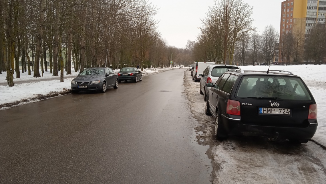 Taip abiejose kelio pusėse statomi (parkuojami) automobiliai Lieporių gatvėje, Šiauliuose